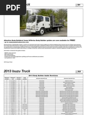Please refer to isuzu body builders guide for data on chassis modifications and body installations. • for body mounting and remodeling according to mounting, the body builders must design and manufacture so that . The body builders manual contains information that may be used in addition to the incomplete vehicle document (ivd) for any manufacturer making alterations . Isuzu truck south africa (itsa) has acquired kanu commercial body construction, as well as automotive chassis technologies (act), . Isuzu truck 2016 body builder guide size : Simply select a vehicle and choose the "body builder manual" option. Isuzu commercial truck of america. With our tem/body builder resources, we provide direct access to the essential information our partners need to. Isuzu commercial truck of america, inc. English number of pages : Isuzu motors does not owe the obligation. America's no.1 selling low cab forward truck since 1986. For modification, alteration or completion of any vehicle and nothing contained herein is to be regarded as providing any such instructions or authorization.
